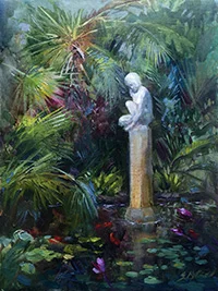 Artists often set up on locations where people can gather and watch. Recently, while painting at Lincoln Park Conservatory, everyone was enjoying the warmth and sweet smells of moist soil. Some folks were very busy, some paused to stop and look, while others paused slower still too say “nice picture” or good job”. Young children look first at the painting and then they look straight into the eyes to see whose painting. The older generation look straight into the eyes first and then maybe or maybe not at the painting. One particular gentleman, Lou was his name, with piercing blue eyes caught my gaze and held it for a good two minutes, we talked about such things as age, life in general and the “old country”. Not sure if he even looked at the painting.